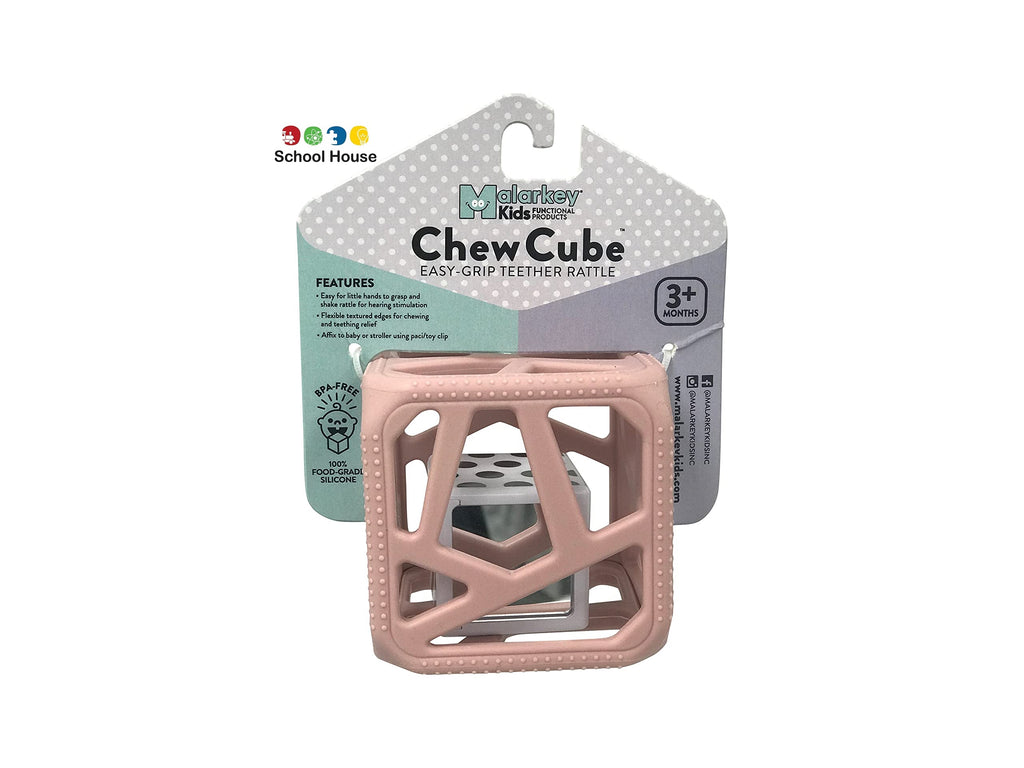 The Malarkey Kids Chew Cube is the mom-created modern rattle and teether. It provides four-way sensory stimulation, including soft, textured teething edges for tender gums; large flexible holes to help baby with gripping skills plus a black and white patterned rattle with mirrors to provide stimulation for baby's ears and eyes.