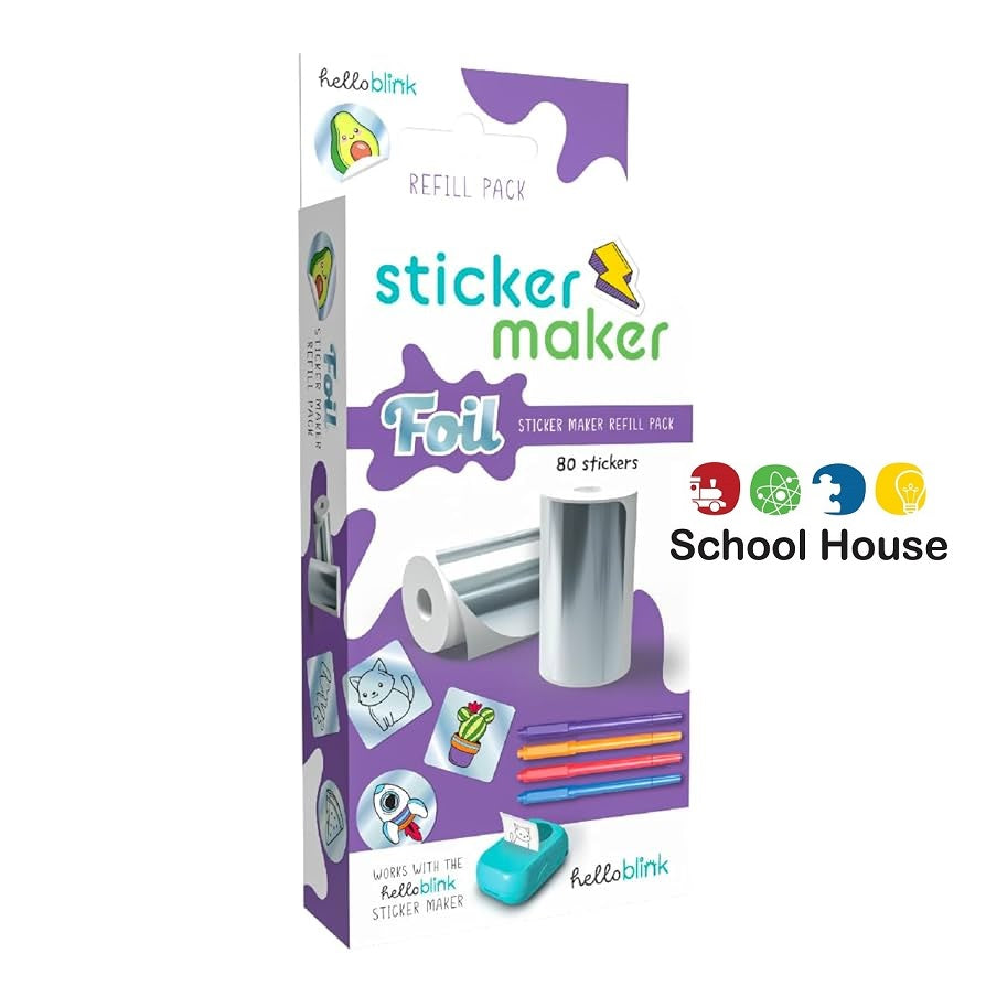 Hello Blink Sticker Maker Foil Refill Pack is to be used with the Hello Blink Sticker Maker for children ages 8+. The pack contains 80 foil stickers in round and square shapes.