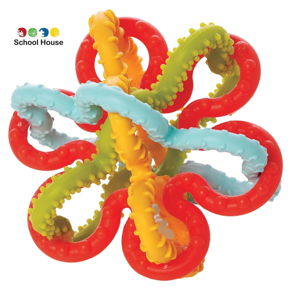 The Squiggle Loops Sensory Toy has all the makings of a textured teether, and brightly colored fidget toy combined. The flexible silicone loops make it easy to grasp, while the textured nubs add tactile play value.