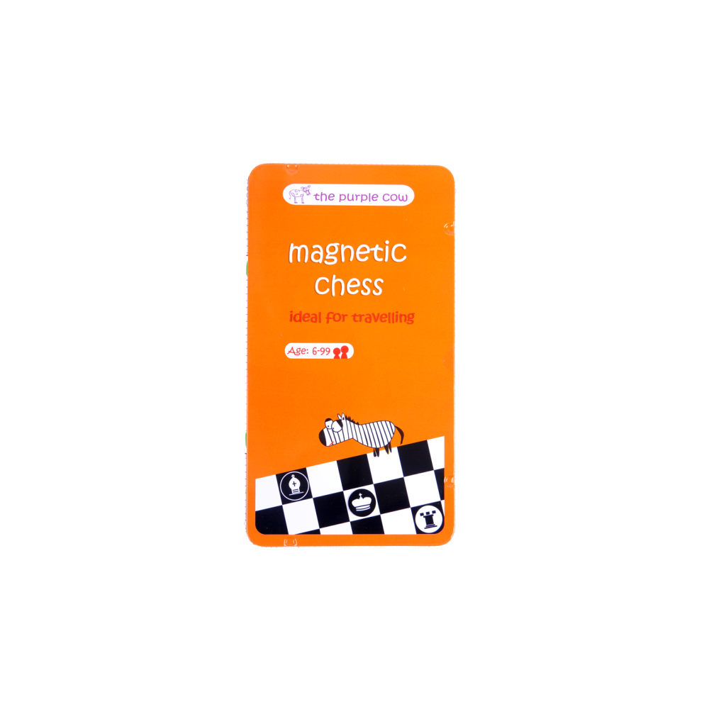 Compact and chique, designed in a slim tin case, printed both sides with magnetic pawns and pieces. Fun and affordable travel games, for all ages.