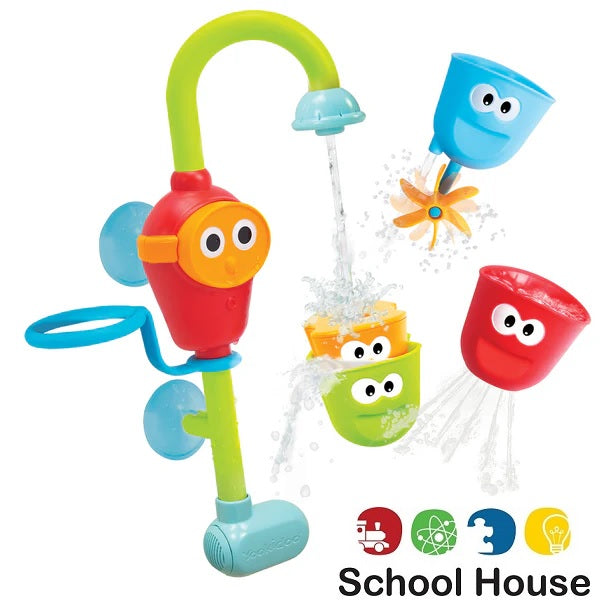 - Let your child fill and spill water into the bath and on their body, moving the swivel arm from side to side and trying to activate the tumblers.