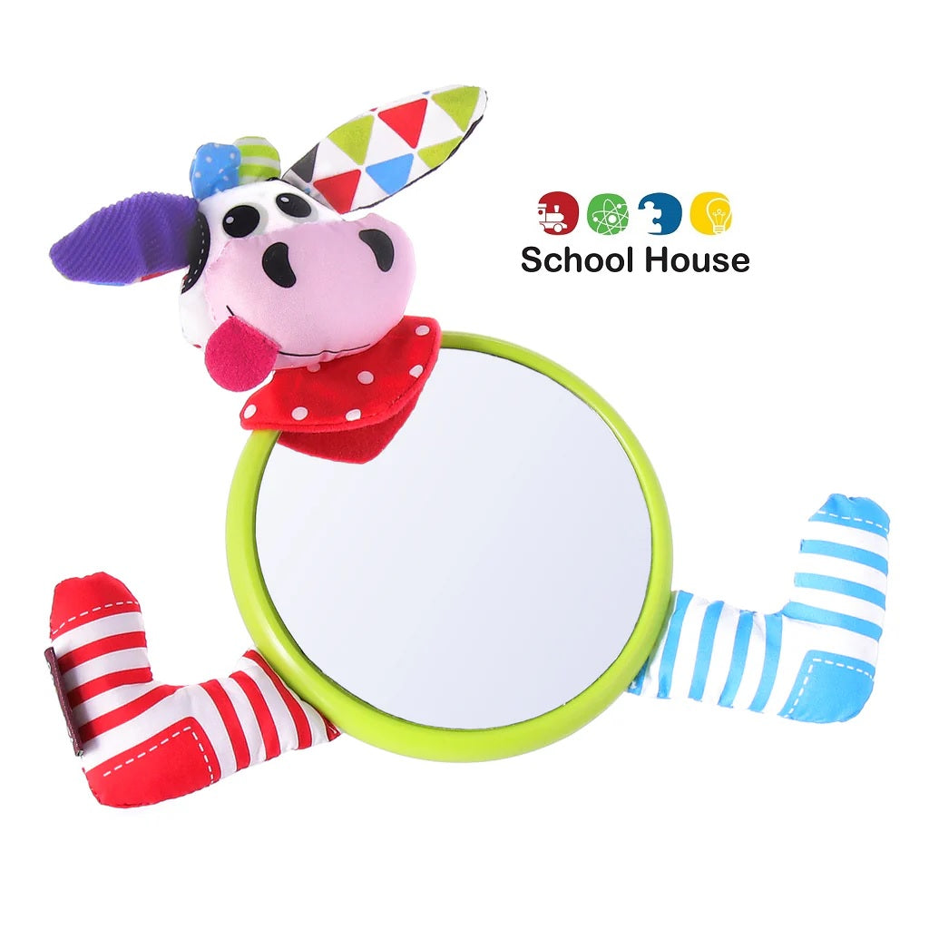 Set up your baby before this large and sturdy baby-safe mirror with multiple features, including an animal with different textures.
