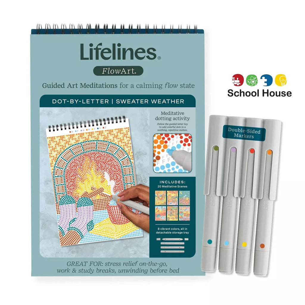 Dot-by-Letter includes 20 meditative scenes and four double-sided markers in a detachable storage tray.