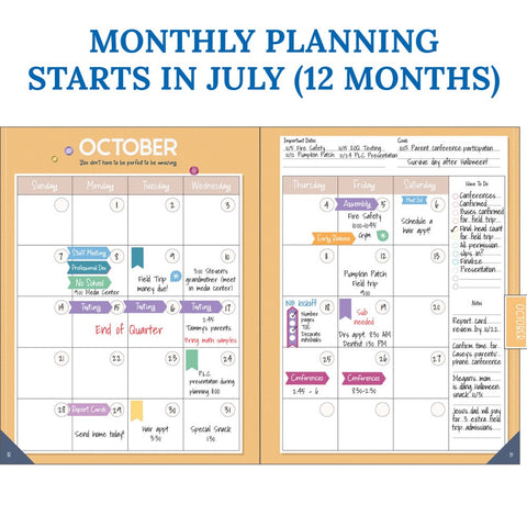 The daily planner features a checklist to organize your lesson plan, track grades, attendance, homework completion, and more with ease. Also ideal as a weekly planner and monthly planner you can use the comprehensive information section to record substitute information, log communication, store contact information, create year-long plans and goals, and more. Use the notes section to record important meetings, reminders, and tasks.