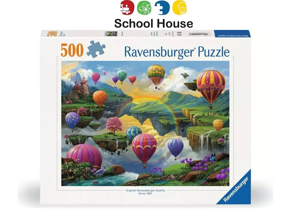 Let your imagination soar as you puzzle this vibrantly colorful, fantastical scene of “Air Balloon Valley” from artist Nathanael Mortensen!