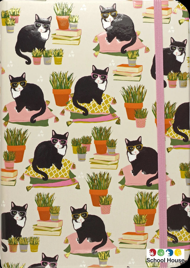 Cool cats on pillows with potted plants ''pop'' with embossed gloss highlights and gold foil on this fanciful feline journal.
