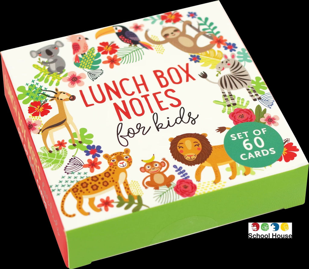 Brighten their day with Lunch Box Notes, featuring short, uplifting phrases and colorful pictures of favorite animals on small coated cards!