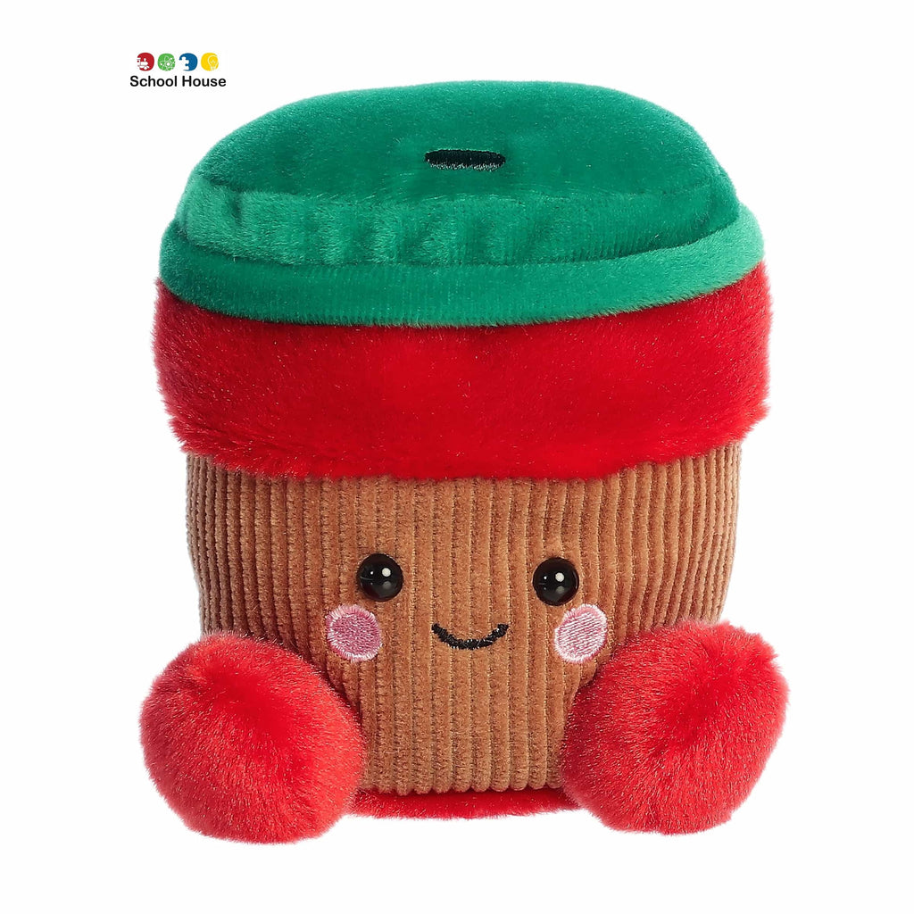Jo is a cozy plush cup of peppermint mocha with a brown heat-sleeve, a bold red design, and a green lid that gives her a minty-fresh flair. Her blushing cheeks and bright smile make her look like the ultimate holiday pick-me-up.