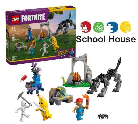 The playset replicates the first challenges players encounter in the LEGO® Fortnite® Odyssey video game, and boys and girls will have fun building the campfire, a workbench and ruins that can be deconstructed and reconfigured. It also features a Supply Llama figure and a wolf figure with a movable tail and legs. The action is brought to life by minifigures of Peely, Sparkplug and a skeleton, who come with weapon accessories to encourage imaginative role play.
