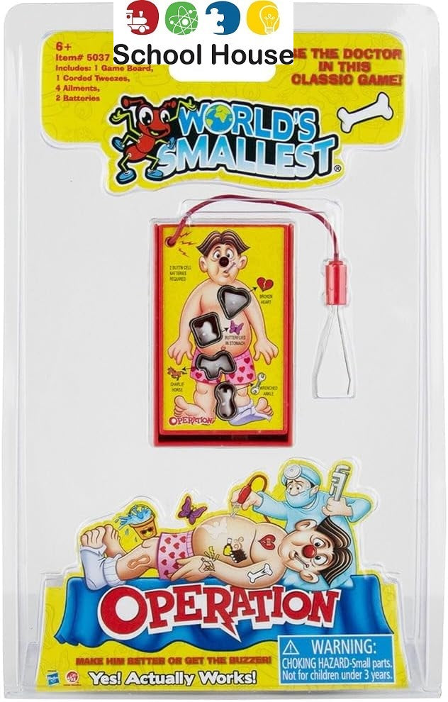 - The classic Operation board game is now available in the world’s smallest size measuring only 2.75 x 0.625 x 1.75 inches.